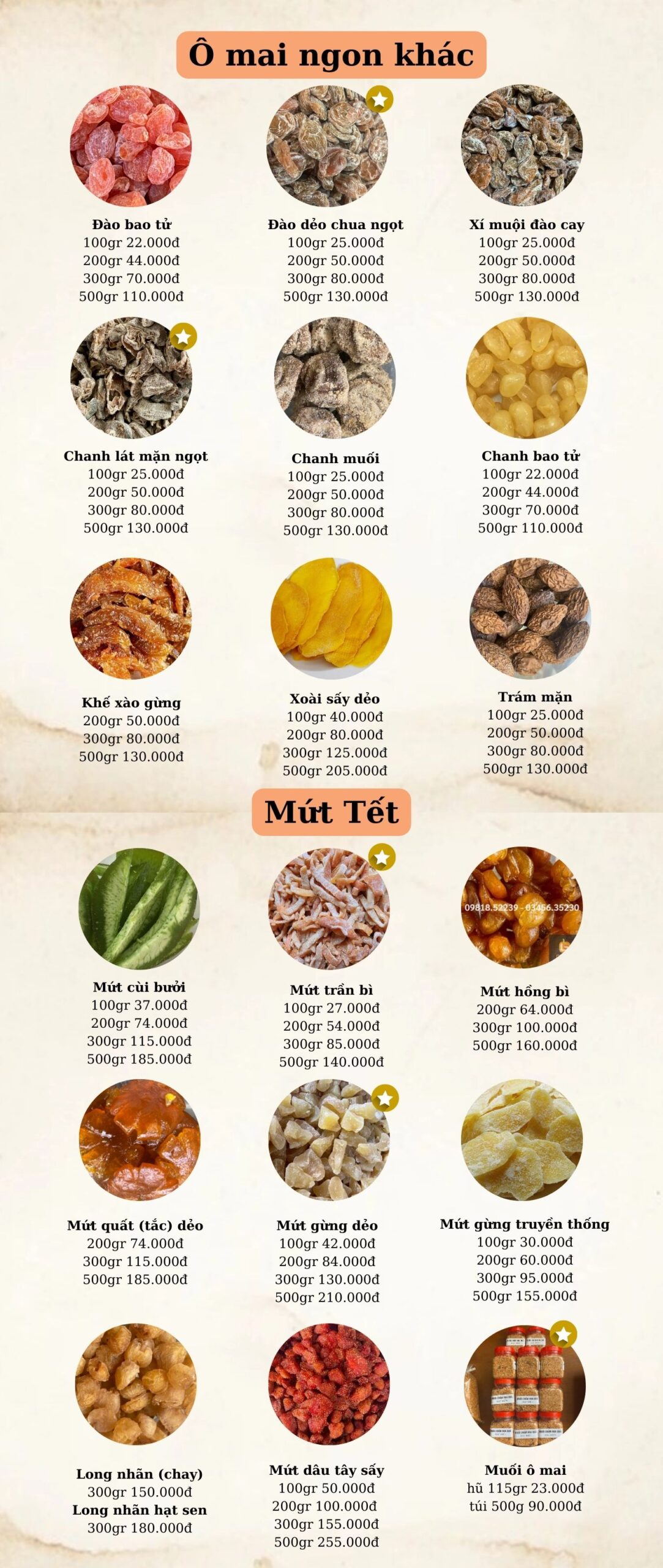 2. Menu chi tiết các loại ô mai của Gia Lợi